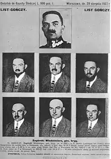 A wanted poster issued after Zagórski's disappearance. He was accused of desertion from the Polish Army.
