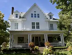 The W.T.S. White House and Carriage House are historic buildings located in Clarinda, Iowa, United States. White created his fortune as president of the Clarinda Poultry Butter and Egg Company. He hired local architect William W. Welch to design his house. It and the carriage house were completed in 1906, and White moved to Chicago the following year. He sold the property to A.U. and Agnes Hunt for $8,000.[2] The house and carriage house were listed together on the National Register of Historic Places in 1994.[1] Both structures are Colonial Revival in style. The 2½-story frame house features Tuscan columns on the front porch, dentil cornice, and diamond lights in the second floor windows. The two-story carriage house measures 25 by 30 feet (7.6 by 9.1 m), and is located behind the main house. It originally housed a horse and buggy, and has been transformed into an automobile garage.