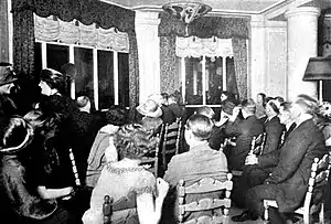 WJAZ initially had a very limited broadcasting schedule. It gained prominence when it began broadcasting from a newly constructed studio located on the ground floor of the Edgewater Beach Hotel on May 12, 1923.[4] For publicity, the general public was invited to watch performances through soundproof three-ply plate glass windows.[5][6] The transmitter and antenna were located adjacent to the hotel building.
