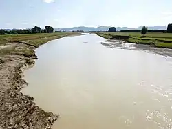 The river has formed the fertile and highly productive Poverty Bay flats on the edge of Gisborne.[2] The Waipaoa River Flood Control Scheme was built in the 1950s.[3] Stopbanks are to be raised by 2031,[4] as soil erosion, especially from the Waingaromia and Mangatu catchments, has built up the river bed, the annual flow of sediment being 15 million tonnes. Despite this pollution, many of the headwaters have indigenous fish.[2] In the lower river, water quality is poor for E. coli, clarity, turbidity, ammoniacal nitrogen and total phosphorus.[5] The sediment, building up at the rate of several centimetres a year, even many kilometres into Poverty Bay, shows that removal of trees such as rimu, matai and kaihikatea and then converting fern covered areas to farmland by the early 20th century, increased sediment flows by 2 to 3 times the former rate.[6]