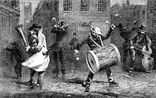 Waits were provided with salaries, liveries and silver chains of office, bearing the town's arms. They added dignity to ceremonial occasions.[2] From the Middle Ages to the 18th century town records include transactions concerning waits, upon their appointment and on the provision of cloaks, ribbons, badges, etc. Payments were also made for their instruments, such as hautboys, bass viols, fiddles and bassoons.[3]