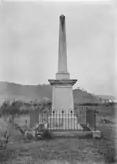 The memorial was unveiled on 26 March 1881.[4] More than 3,000 Maori nationwide arrived for the unveiling of the memorial and a substantial meeting house or runanga whare. There was also a hui (gathering) to discuss three clauses in the Treaty of Waitangi with a view to setting aside past intertribal conflicts.[5] At the time of the unveiling, the Governor-General Sir Arthur Hamilton Gordon had been asked to attend. However, the Minister of Native Affairs, William Rolleston had come in his place. Ngāpuhi leaders, expressed their disappointment but were satisfied Rolleston had come as the Governor-General's representative.[6]