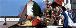 Waiting for the Barbarians (German: Warten auf die Barbaren) is an oil on canvas painting by the German artist Neo Rauch, from 2007. To the right in the picture is a carnival where a minotaur is cheered on a stage, while to the left another minotaur is about to be burned at the stake. The canvas also includes several other people and creatures. The title is taken from the poem "Waiting for the Barbarians" by Constantine P. Cavafy. The painting is held at The Broad, in Los Angeles.[1]