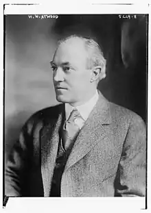 Wallace Walter Atwood studied geography at the University of Chicago, where he was a member of the Delta Kappa Epsilon fraternity.[1] He graduated in 1897 and earned his doctorate in 1903, after which he was Associate Professor of Geology at the University of Chicago until 1913. He was professor of Physiography at Harvard from 1913 to 1920. He was elected president of Clark University in 1920 and assumed that position until 1946. As president of Clark University, he ordered in 1922, that the lights be turned off while Scott Nearing was addressing a Liberal Club on socialism on the campus of the University, which won him great renown. On this occasion, he wrote the pamphlet Extra-Curricula activities and academic freedom. He also banned The Nation magazine from the Clark University campus.