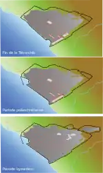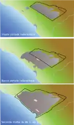 In the 3rd century, fortifications were built to protect the city from the Goths with materials from previous buildings. With these fortifications, two Gothic attacks were repelled, in 254 and 268. The Roman wall was 1.65 m wide, with square towers.[2] The main street of the city (Leoforos or Mesi) extended from the Golden Gate in the west (Vardario Square) to the Cassandreot Gate in the east. The southern wall extended somewhat further south of today's Tsimiski avenue.