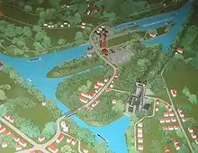 The old boat lift was opened in 1899.[1] It was an important structure on the Dortmund-Ems-Kanal without which it would not have been possible to navigate to Dortmund Port. The lift was the biggest and most spectacular structure on the old Dortmund-Ems-Kanal. It was inaugurated by Kaiser Wilhelm II on 11 August 1899.