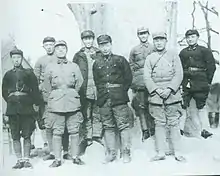 1st Red Army and 15th Red Army commanders in Chunhua County, Shaanxi, February 1936. Front row from left:Wang Shoudao, Yang Shangkun, Nie Rongzhen, Xu Haidong. Back row from left: Luo Ruiqing, Cheng Zihua, Chen Guang, Deng Xiaoping.