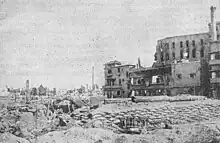 Cumings states that civilians represent at least half of the war's casualties, while Lewy suggests that the civilian portion of the death toll may have gone as high as 70%, compared to Lewy's estimates of 42% in World War II and 30%–46% in the Vietnam War.[2][3] Data compiled by the Peace Research Institute Oslo lists just under 1 million battle deaths over the course of the Korean War (with a range of 644,696 to 1.5 million) and a mid-value estimate of 3 million total deaths (with a range of 1.5 million to 4.5 million), attributing the difference to excess mortality among civilians from one-sided massacres, starvation, and disease.[7] Compounding this devastation for Korean civilians, virtually all major cities on the Korean Peninsula were destroyed as a result of the war.[3] In both per capita and absolute terms, North Korea was the country most devastated by the war. According to Charles K. Armstrong, the war resulted in the death of an estimated 12%–15% of the North Korean population (c. 10 million), "a figure close to or surpassing the proportion of Soviet citizens killed in World War II".[8]