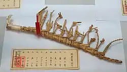 Warazan (藁算) was a system of record-keeping using knotted straw at the time of the Ryūkyū Kingdom.[3][4] In the dialect of the Sakishima Islands it was known as barasan and on Okinawa Island as warazani or warazai.[5] Formerly used in particular in relation to the "head tax", it is still to be found in connection with the annual Itoman Giant Tug-of-War (糸満大綱引), to record the amount of miki or sacred sake dedicated.[1]