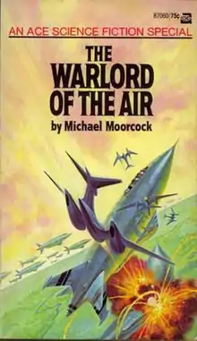 The Warlord of the Air is a 1971 British alternate history novel written by Michael Moorcock. It concerns the adventures of Oswald Bastable, an Edwardian era soldier stationed in India, and his adventures in an alternate universe, in his own future, wherein the First World War never happened. It is the first part of Moorcock's A Nomad of the Time Streams trilogy and, in its use of speculative technology (such as airships) juxtaposed against an Edwardian setting, it is widely considered to be one of the first steampunk novels.[2][3] The novel was first published by Ace Books as part of their Ace Science Fiction Specials series.