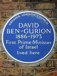 - ↑ "David Ben-Guiron | Prime Minister of Israel | Blue Plaques". English Heritage. Retrieved 2023-04-09.