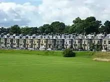 A large playing field belonging to George Heriot's School extends into the Goldenacre area. It was used in the 1981 film Chariots of Fire for the scene where, for the first time, Harold Abrahams watches Eric Liddell run.