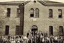On the morning of March 23, 1975, the 1924 high school building caught fire and burned to the ground. The school board quickly set up an election for April 17, 1975 to replace the building on a bond in excess of $200,000.[15] The bond passed with more than the two-thirds majority needed and a new high school building was built and in service the following school year.[16] By 1980 a separate middle school building had also been added to campus and in 1983 a new gymnasium was constructed; in 1982 the gymnasium that had been attached to the 1924 high school building was destroyed by fire. By the end of the 1990s increased enrollment, especially from the rural areas of the district, necessitated the need of a larger and more modern high school. With the construction and opening of this new high school building in the early 2000s, the 1975 high school building became the district's new middle school building and elementary school students occupied both the 1981 middle school building and the 1965 elementary school building, which is currently the oldest building on a campus that dates its original educational origins to the 1888 bond issue.