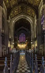 Washington Memorial Chapel in Valley Forge National Historical Park is a national memorial dedicated to General George Washington and an active Episcopal parish in Valley Forge, Pennsylvania.[1] The church was inspired by a sermon preached by Anglican minister Reverend Dr. W. Herbert Burk, founder and first rector of the parish.[2] The building was designed by architect Milton B. Medary.[3] It was listed on the National Register of Historic Places on May 1, 2017,[4] and is undergoing an active restoration campaign.[5][6]