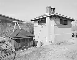 The Washington Park Sewage Pumping Station is an historic wastewater pumping facility in Providence, Rhode Island. Its principal visible component is a concrete block structure, finished in stucco and topped by a hip roof, which is about 16 by 16 feet (4.9 m × 4.9 m). This building stands atop a large cast-in-place concrete well, in which pumps and gate valves are housed. The facility was built in 1911 to pump raw sewage from the low-lying Washington Park area to the Field's Point wastewater treatment facility, which lies about 1,000 feet (300 m) to the north.[2] The pump station is located well back from the street, behind a low brick distribution facility. It was added to the National Register of Historic Places in 1989.