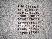 The value of pi is carved into the wall of the eastbound platform. However, only the first 11 decimal places are correct.[19] It has been determined that the digits displayed are digits 1..10, 101..110, 201..210 etc.[20]