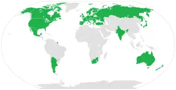 India joined as the 42nd participating state on 7 December 2017. "Wassenaar Arrangement participating states reviewed the progress of a number of current membership applications and agreed at the plenary meeting to admit India which will become the Arrangement's 42nd participating state as soon as the necessary procedural arrangements for joining the WA are completed", the grouping said in a statement.[2][3] India's application was supported by Russia, the United States, France and Germany.[4]