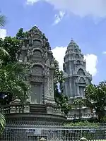 Wat Ounalom (Khmer: វត្តឧណ្ណាលោម, UNGEGN: Vôtt Ŭnnaloŭm, ALA-LC: Vatt Uṇṇālom, IPA: [ʋɔət ʔunnaːloːm]; also Wat Unnalom and several other spellings) is a wat located on Sisowath Quay in Phnom Penh, Cambodia, near the Royal Palace of Cambodia.[1] As the seat of Cambodia's Mohanikay Order, it is the most important wat of Phnom Penh, and the center of Cambodian Buddhism. It was established in 1443 and consists of 44 structures.[2] It was damaged during the Khmer Rouge period but has since been restored.[2] The main complex houses a stupa that contains what is believed to be an eyebrow hair of The Buddha and an inscription in Pali.[2]