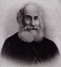 Alexander Brown built a log cabin at the top of Waterdown's Great Falls in 1805, becoming the first European resident of the area. This picture was taken in 1852, the year of Brown's death (he wears a military tunic, alluding to his rank of Colonel in the War of 1812).