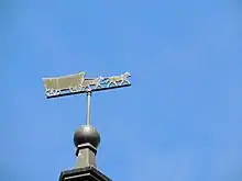 The weather vane, in the shape of a Conestoga wagon, atop the copper roof