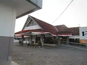 Wates Station (WT)[1] is a class-II railway station located in Wates, Kulon Progo Regency, Special Region of Yogyakarta, Indonesia owned by the Operational Area VI Yogyakarta of Kereta Api Indonesia. The station is located at an altitude of +18 meters, at the south of Alun-Alun Wates and Kulon Progo Regency government complex. It is the main station of the regency, serving various passenger rail services both long distance and local/commuter rail services.