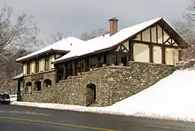 Boston & Maine Railroad Station at Belmont Center; the platforms are now used for MBTA Commuter Rail, but the building itself is now privately owned