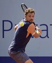 Stanislas Wawrinka (French: [stanislas vavʁiŋka];[lower-alpha 1] born 28 March 1985) is a Swiss professional tennis player. He reached a career-high Association of Tennis Professionals (ATP) singles ranking of world No. 3 for the first time on 27 January 2014.[4] His career highlights include three Grand Slam titles, those being the 2014 Australian Open, 2015 French Open and 2016 US Open, where he defeated the world No. 1 player in the final on all three occasions. Other achievements include reaching the final of the 2017 French Open, winning an ATP Tour Masters 1000 title at the 2014 Monte-Carlo Masters, and reaching three other Masters finals (at 2008 Rome, 2013 Madrid and 2017 Indian Wells). Representing Switzerland, Wawrinka won gold in doubles at the 2008 Beijing Olympics with teammate Roger Federer, and was also pivotal in the Swiss team's victory at the 2014 Davis Cup. Wawrinka considers clay his best and favorite surface, and his serve and backhand his best shots. John McEnroe once said that Wawrinka has one of the most powerful backhands ever, and in 2009 said he possessed "the best one-handed backhand in the game."[5] He has been described by The Economist as "tennis's great latecomer", owing to finding success late in his career.[6] Prior to the 2014 French Open, he requested and was granted a formal change in his name from "Stanislas Wawrinka" to "Stan Wawrinka", stating that he plans to use the abbreviated name in tournament draws and press conferences.[7]