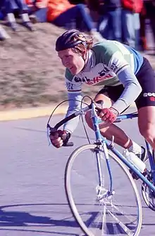 ![]() Wayne Stetina of Indianapolis, Indiana competing in a bicycle road race on the campus of Indiana University in Bloomington, Indiana in October 1976. | |