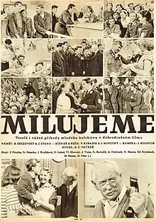 We Love (Czech: Milujeme) is a 1952 Czech drama film directed by Václav Kubásek and starring František Peterka, Jaroslav Průcha and Jarmila Krulišová.[1] It was shot at the Barrandov and Hostivař Studios in Prague and on location around Kladno, Ostrava and Libušín. The film's sets were designed by the art director Alois Mecera. It reflected the ideology of the ruling Communist Party and the Stalin-era aesthetic of socialist realism.