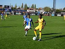 Wealdstone Football Club (/ˈwldstn/ WEELD-stone) is an English semi-professional football club based in Ruislip, London Borough of Hillingdon, and affiliated to the Middlesex County Football Association.[3] They currently play in the National League, the fifth tier of English football, having been promoted as champions of the National League South for the 2019-20 season. While established in 1933, it has roots dating to 1972and was created through a series of local mergers in Wealdstone, then in Middlesex.[4] For most of its existence the club was based at Lower Mead stadium in Harrow, until 1991. After a long period of homelessness and ground sharing with various local clubs, since 2008 they have been based at Grosvenor Vale. Their traditional colours are royal blue and white, and they are nicknamed "The Stones" or "The Royals".