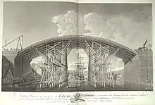 It was the second iron bridge built after The Iron Bridge, but was over twice as long with a nominal span of 240 ft (73 m), and only three-quarters the weight. Indeed, at the time of building, it was the biggest single-span bridge in the world (72 m), matching the collapsed Trezzo Bridge.[3]