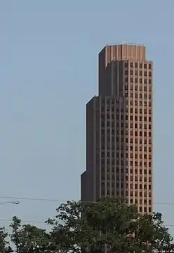 Wedge International Tower, usually capitalized as WEDGE International Tower,[1] is a skyscraper in Houston, Texas. The building was formerly known as the Southwest Bank of Texas Building, Unitedbank Plaza, and 1415 Louisiana.[3] The building rises 551 feet (168 m) in height.[2] It contains 43 floors, and was completed in 1983.[2] Wedge International Tower currently stands as the 21st-tallest building in the city. The architectural firms who jointly designed the building were 3D/International and Nasr/Penton & Associates.[1] The building is currently named after its primary tenant, WEDGE Commercial Properties; the firm purchased the building in October 1994 at a price between US$25 million and $45 million,[3] and the structure serves as its corporate headquarters.[1][4] In 1989 Exxon had office space in the Wedge International Tower.[5]