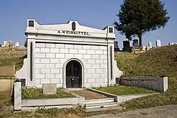 Weiskittel-Roehle Burial Vault is a historic burial vault located in Section P, Loudon Park Cemetery, Baltimore, Maryland. It is a rectangular structure made of cast iron built into the side of a hill, constructed to look like ashlar masonry and painted gray. It was made as the tomb of Anton W. Weiskittel who died in 1884, a Baltimore iron founder.[2]