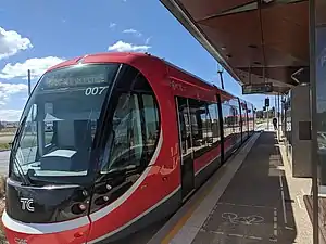 Well Station Drive is a light rail station on the Canberra Metro R1 Civic to Gungahlin line, located at the intersection of Well Station Drive and Flemington Road. It serves the residential suburb of Harrison and is the closest station to many businesses in Mitchell. The station's location and lack of suitable footpaths makes access to the industrial area difficult for pedestrians,[1] leading to safety concerns within the community.[2] Bicycle racks and "kiss and ride" bays are currently installed around the intersection adjacent to the station.[3]