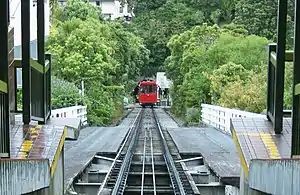 The Wellington Cable Car is a funicular railway in Wellington, New Zealand, between Lambton Quay, the main shopping street, and Kelburn, a suburb in the hills overlooking the central city, rising 120 m (394 ft) over a length of 609 m (1,998 ft).