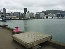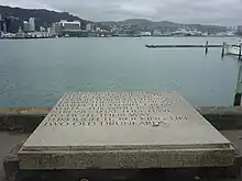 The Wellington Writers Walk is made up of a series of 23 quotations from New Zealand writers, including poets, novelists, and playwrights. The quotations are placed along the Wellington waterfront, from Kumutoto stream to Oriental Bay, in the form of contemporary concrete plaques or inlaid metal text on wooden 'benchmarks'.[1][2][3][4] They were designed by Catherine Griffiths and Fiona Christeller and installed to honour and celebrate the lives and works of these well-known writers, all of whom had (or have) some connection to Wellington.