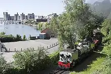 The line from Waunfawr to Rhyd Ddu climbs the steep valley of the Afon Gwyrfai, past Llyn Cwellyn all the way to its source in Llyn y Gader. It was the final and most scenic section of the North Wales Narrow Gauge Railways Moel Tryfan Undertaking to be built, originally opened throughout in 1881. It was re-opened for public passenger service on 18 August 2003.