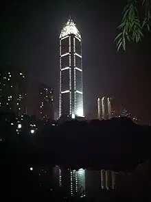 Wenzhou World Trade Center (Chinese: 温州世贸中心大厦) is a 68-floor supertall skyscraper in Wenzhou, Zhejiang, China. Construction of the building began on 9 June 2003 and was completed in 2010 at 333 m (1,093 ft), giving it the title of the 107th-tallest building in the world. It is located in the downtown area of Wenzhou where it stands as the tallest building in the city, the tallest in Zhejiang province and the 56th-tallest in China.