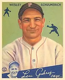 He was signed by the Chicago Cubs, but before he played for the team he was traded on October 14, 1930, to the Boston Braves along with Bill McAfee for pitcher Bob Smith and outfielder Jimmy Welsh.[1] On May 1, 1931, Schulmerich made his Major League debut with the Boston Braves.[6] He was the first person from Oregon State University to play in the Major Leagues.[7] In his first season, he batted .309 with two home runs and 43 RBIs in 95 games, mainly in right field.[6] The next season, he hit .260, and in 1933 he batted .247 in 29 games before he was traded to the Philadelphia Phillies.[6] Schulmerich was traded on June 17 along with Fritz Knothe in exchange for outfielder Hal Lee and third baseman Pinky Whitney.[1]