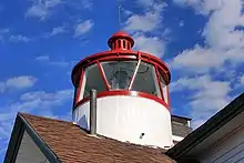 During the early 1800s Bass River was an important safe harbor for schooners and fishing ships in Nantucket Sound. At that time, a small light was placed in the upper window of a private home to help mariners in the area.[4] In 1850, the federal government of the United States appropriated $4000 to build a lighthouse near the breakwater at the mouth of Bass River. In 1854, construction began on the light and keepers home. As was typical of early Cape Cod style lighthouses, the light tower was an integral part of the keepers house, centered atop the dwelling's roof.[1][5] Because most of these structures leaked significantly, they were replaced with self-standing towers; the West Dennis Light is the only remaining lighthouse on Cape Cod built with this design. The light was lit in 1855, and continued in service until 1880, when the Lighthouse Service decided the Bass River Light was no longer necessary since a new light had been built at Stage Harbor in Chatham. After many complaints, the light was relit a year later.[1]