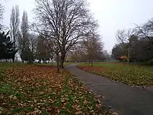 West Green developed as a small village in the Middle Ages with settlement first recorded in 1393. By the start of the seventeenth century, the eight buildings that then stood in West Green formed the only hamlet in the central area of the manor of Tottenham. Although it had not grown by 1800, by 1840 it contained 18 houses. This made it bigger than Wood Green at that time.[2] Development took off during the period after the 1860s, particularly after the arrival of the Tottenham & Hampstead Junction Railway in 1878. Nineteenth-century local author, Charlotte Riddell described the changes vividly in her 1874 book Above Suspicion:
