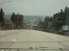 West Hills became a regional transportation hub with the construction of the first automobile bridge over the deep Latah Creek gorge in 1911, when the Sunset Boulevard Bridge was built. It connected Downtown Spokane with agricultural areas to the west via West Hills along Sunset Boulevard.[5] In 1926, the Sunset Boulevard Bridge was chosen to carry U.S. Route 10, one of the first major east–west highways across the northern tier of the country. Numerous motels and campgrounds were developed in the area just west of the bridge at the base of Sunset Hill. A tourist camp was established at what is now High Bridge Park[6] and along Sunset Boulevard itself motels were developed. Many stand to this day, though few remain operational.[5][7] The area's importance in transportation waned in the 1960s as Interstate 90 was constructed roughly parallel to the Sunset Highway. U.S. Route 10 replaced by the limited-access freeway, which passes next to but does not have off or on ramps connecting directly to the motel district. In the decades since, hotels and motels have been developed at the top of the hill, on the western edge of the neighborhood, where there are ramps connecting West Hills to the interstate.[8]