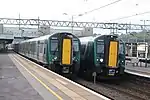 Bottom: Class 350 in the transitional LNR livery at Liverpool Lime Street