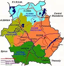 As one of thirteen administrative regions, the Western Macedonia Region (Greek: Περιφέρεια Δυτικής Μακεδονίας, Periféria Dytikís Makedonías) was established in 1987, comprising the prefectures of Kastoria, Grevena, Kozani and Florina. In the absence of a working budget the administrative regions however remained unable to fulfill even their limited responsibilities, until in 1994 they assumed the prefectures' competences in regard to tax collection, European structural funding and treasury.[8]