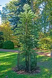 Throughout the arboretum, each specimen tree is labelled, either on the trunk or a low-hanging branch. Blue labels indicate Westonbirt's "champion trees", the tallest or largest of their kind in Britain; in 2011 there were 79 of these.
