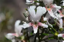 Westringia angustifolia, commonly known as scabrous westringia,[2] is a flowering plant in the family Lamiaceae and is endemic to Tasmania. It is a small, upright shrub with mauve or white flowers.