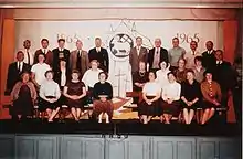 A drama committee appears to have existed from 1897,[28] but this society needed to be renewed following the First World War.[11] The Westwood Glee Club was formed in 1931 but in 1934 merged with the dramatic society.[29] The society was still very strong in the 1970s, staging pantomimes and comedies by J B Priestley.