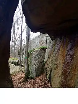 The Westwoods Trails is an extensive hiking trail system in Guilford, Connecticut. The trail system has approximately 39 miles (63 km) of trails with features including caves, lakes, streams, rivers, and interesting rock formations. The preserve extends across land owned by the Guilford Land Conservation Trust, which also owns many other land parcels across the town which provide hiking trails, and the State of Connecticut. The trails are accessible for walking, running, and mountain biking. Hunting is only allowed on state land during the season.