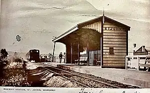 St John's was a flag station, which served the St Johns Hill suburb until 1960.[4] It was at the corner of Peat Street and London Street.[13] There was possibly an earlier station named Havelock.