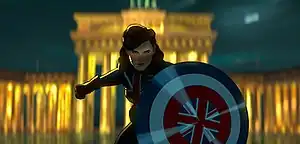 The series features a cel-shaded animation style, with character likenesses based on the actors from the films such as Hayley Atwell for Captain Carter.[53] During the writing of the first season, Captain Carter emerged as a prominent character who would go on to appear in each subsequent season.[45]